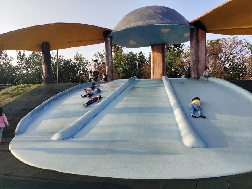 ▼這裡以「山林綠遊.昆蟲森林樂園」為主題,規劃了火炎山山丘地景溜滑梯、瓢蟲滑梯、無障礙滑梯、沙桌、水坑、戲水池、蘑菇造型厠所、共融鳥巢鞦韆、共融蹺蹺板、旋轉飛輪、攀爬牆等11種主題遊具,小朋友光看到就很興奮啊!