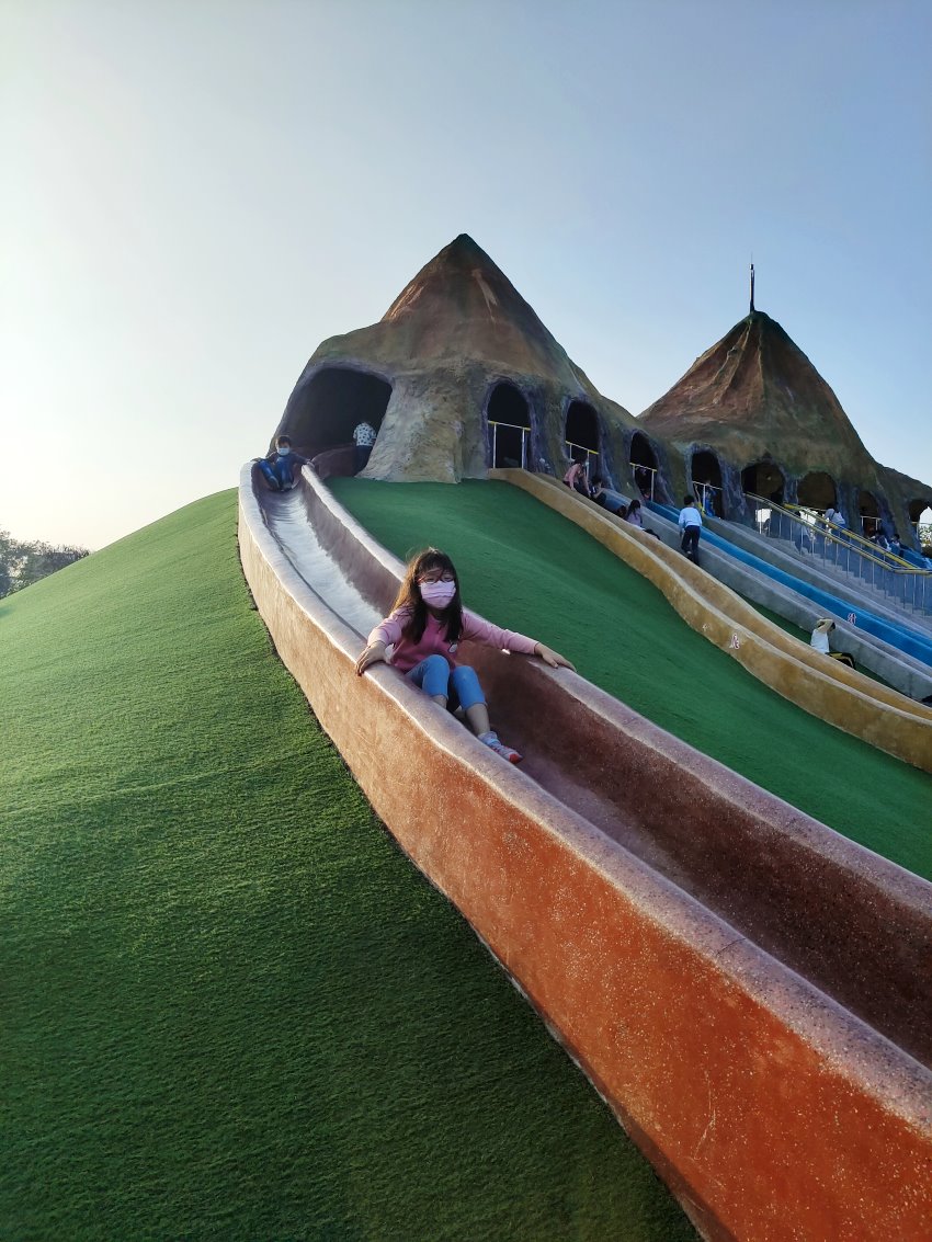 ▼高兩米的瓢蟲綠丘溜滑梯比較適合小小孩玩,有點像是之前很流行的大碗公溜滑梯一樣,玩法也相對多元!