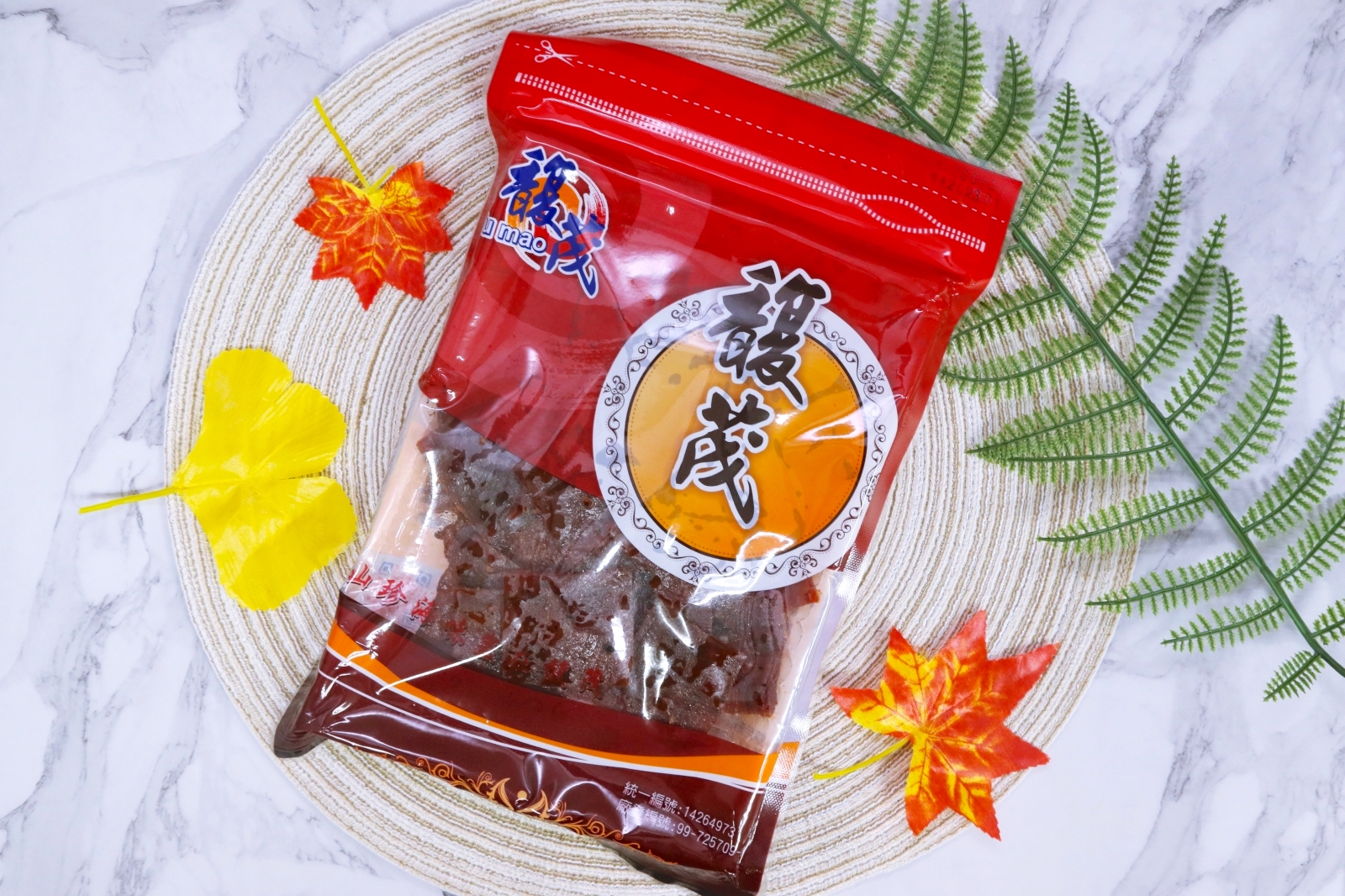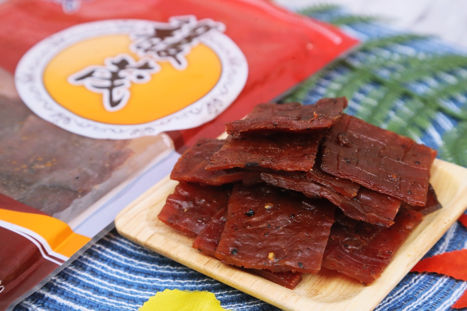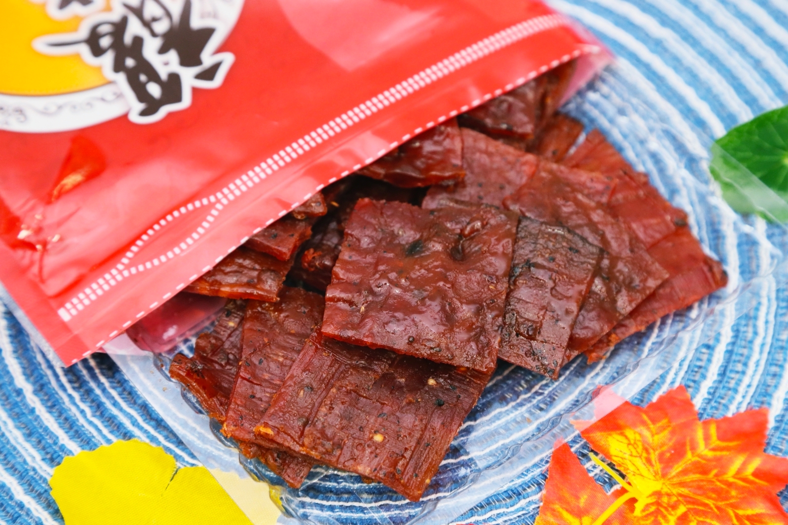 ▼青花椒麻辣肉乾用「青花椒」調味,為花椒的品種之一。每片肉乾上都有多顆青花椒粒,讓肉乾除了甜味還有豐富的麻度層次,以切片的厚度來說,牙齒咬下不吃力,厚度很有感。