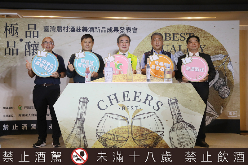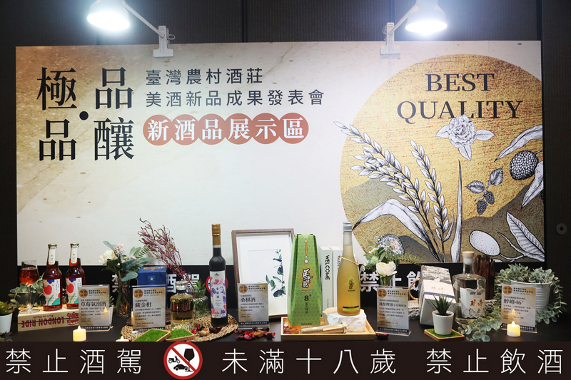 這次新酒發表會共有4家農村酒莊推出5款新酒,其中包括有宜蘭縣藏酒酒莊的藏金柑以及桑椹酒、苗栗縣大湖地區農會酒莊的草莓氣泡酒、台中市霧峰區農會酒莊的醉峰.46、南投縣信義鄉農會酒莊鳳梨釋迦小米風味酒