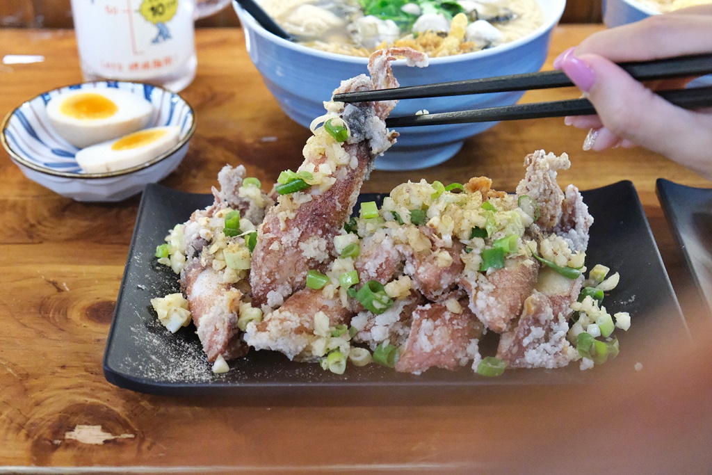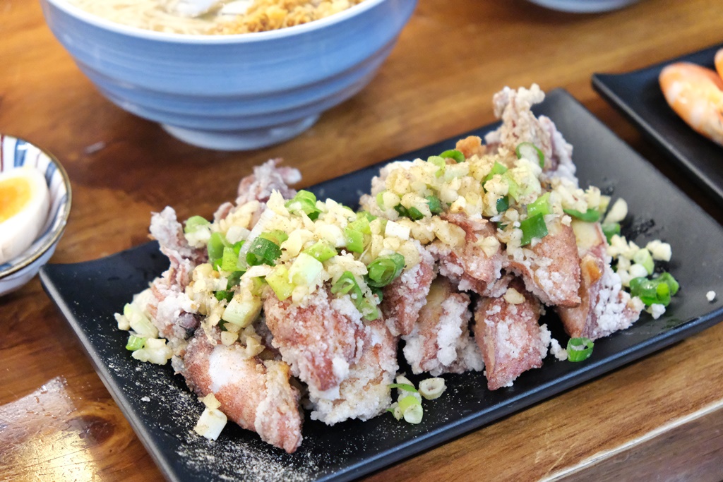 才剛講完就立刻來了一盤炸物,請問這盤誰能抗拒呢?!包含了無骨鹹酥雞、甜不辣和米血糕,最愛甜不辣炸的好酥脆,沒有一絲的腥味;鹹酥雞整塊都是肉,外酥內多汁,和三五好友點一盤再小酌一番真是太讚啦