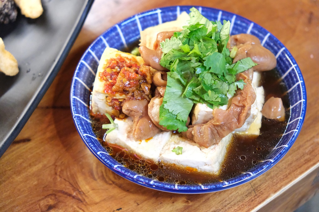 以油豆腐為基底,上面鋪上滷大腸,微微的辣味,吃起來很有五更腸旺的感覺~