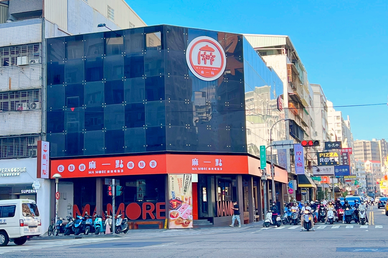台中公益路商圈11/22新開幕的超chill麻辣鍋「麻一點 麻辣喝點茶」,是鼎王集團旗下新品牌,以年輕風格的火鍋、手搖飲為主。「麻一點」的位置就在公益路與精誠路口(原本為塩選燒肉),外觀建築物以顯眼的亮橘色系搭配質感黑色,在整條公益路上特別亮眼。經典招牌三味鍋(麻辣+菌菇+番茄)套餐是店內最大特色,用麻辣鍋 X 手搖飲,打造出全新麻辣鍋新風潮,跟以往的麻辣鍋截然不同。