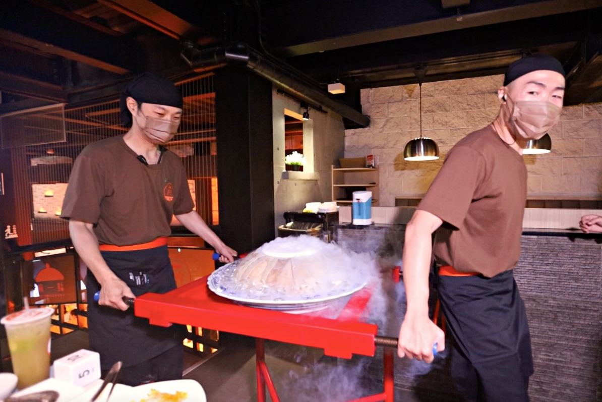 噴著煙的毛肚山讓我們所有人驚呆到掉下巴!瞬間成了整家店的焦點,鄰桌客人也湊過來拍照。聽說我們是開幕當天的頭香,真的很幸運獲得巨無霸毛肚。這個儀式感簡直無恥度,有夠接地氣的,我好愛啊!