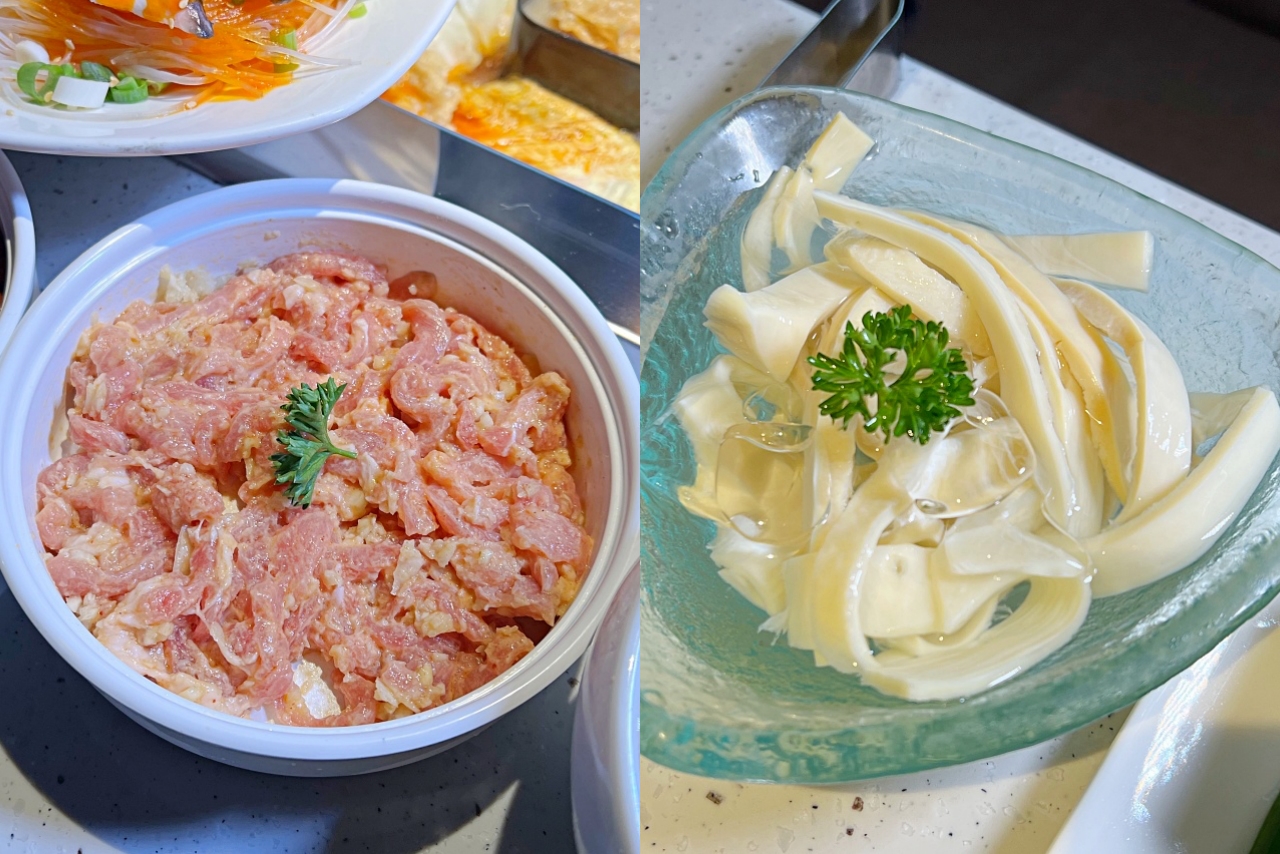 ▲「蒜香爽嫩豬肉條半份$188」、「精選厚片黃喉半份$170」人數多的時候吃火鍋最過癮,可以把想吃的食材通通點起來,很少見的黃喉口感Q脆,推薦可以試試。