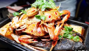 【台中西區】水貨炭火烤魚火鍋(公益路總店)~麻辣螃蟹山、麻辣淡菜山,配上重慶烤魚視覺浮誇無極限!