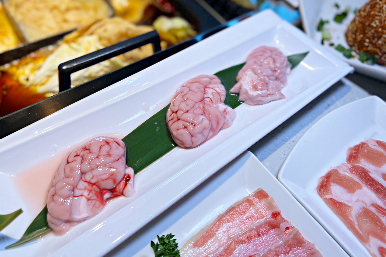 ▲「來點豬腦花 半份 $150」 看起來有點可怕的豬腦花,是店家強力推薦,豬腦花可是正宗四川麻辣火鍋的必點食材,用來招待賓客的珍貴食材之一。其實煮完後也沒那麼可怕,麻辣豬腦花吃起來像帶著香麻味道的嫩豆花。