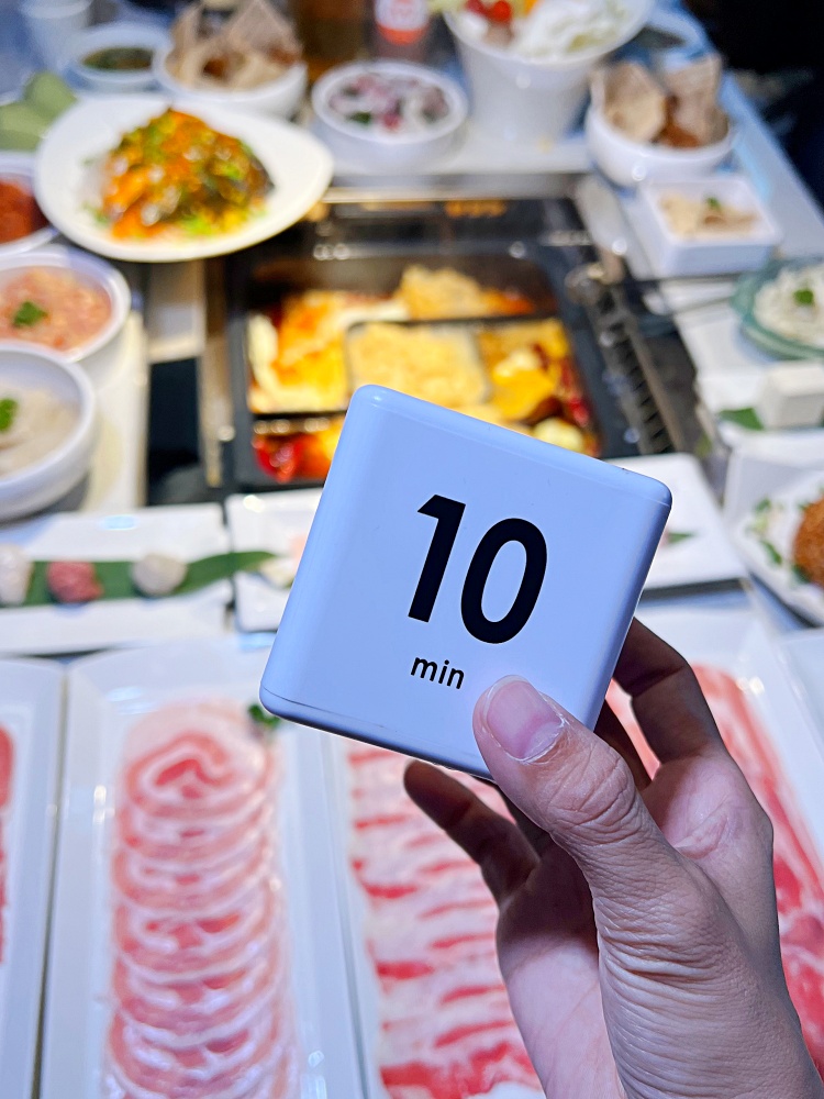 我們這次9大2小,點了2組3人套餐,再加點幾道必點商品。上餐的速度挺快的,點完餐按下送出,10分鐘內就陸續出餐,一下時間就擺滿桌。服務人員很貼心會一道道介紹吃法,「麻一點」的麻辣湯底有別於台式麻辣鍋,特別選用重口味的重慶及成都麻辣鍋風味,湯頭濃郁用來涮食材而不喝湯,口感麻香溫潤、清爽不膩,不愛吃辣的我都吃的津津有味。
