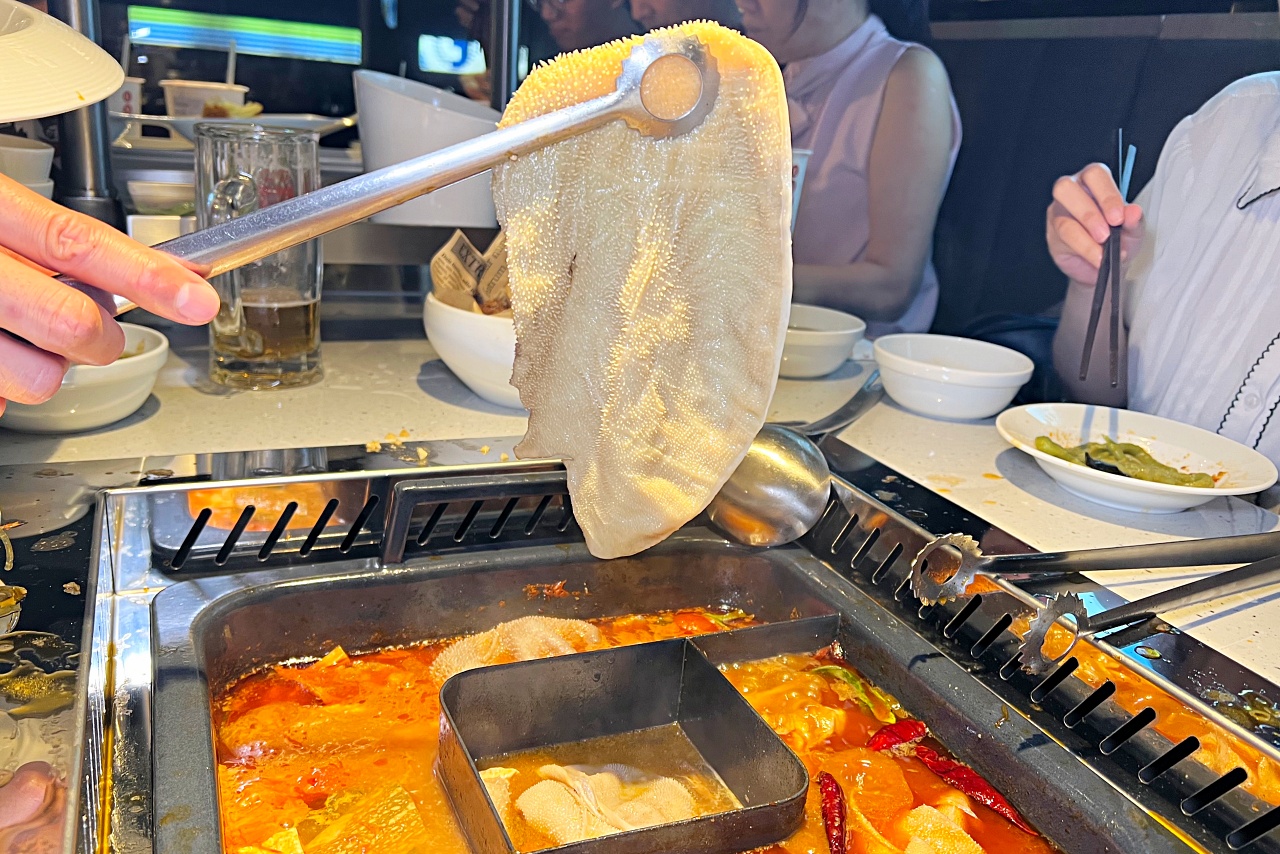 毛肚是店家強力推薦麻辣鍋必點!獨特顆粒口感,只要在鍋裡七上八下繞三圈涮15秒,吸附飽滿濃郁湯汁,口感是帶有脆度的,特別好吃。