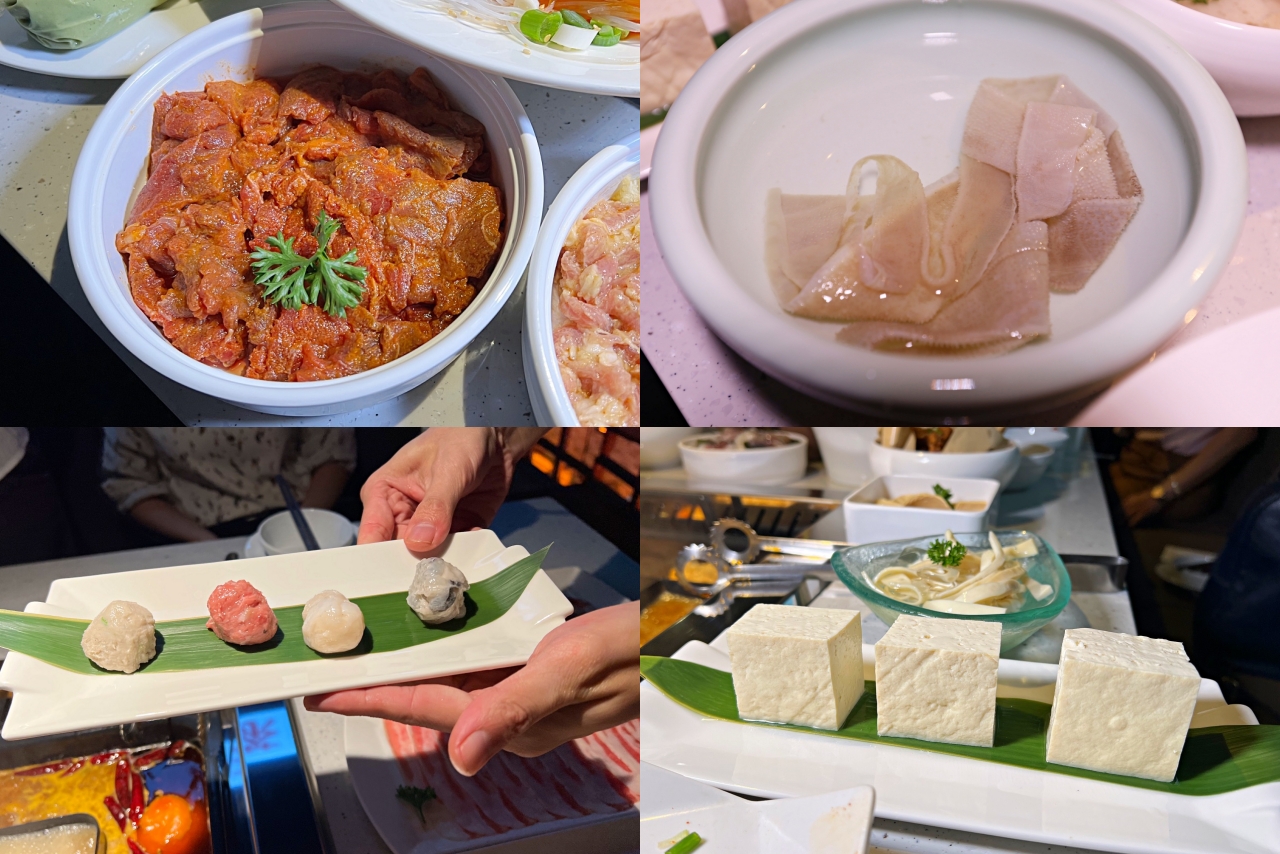 ▲由上到下(皆為半份):鮮嫩滑牛肉、功夫香毛肚、綜合手工丸(蝦球、花枝丸、牛肉丸、魚丸)、鮮豆腐。