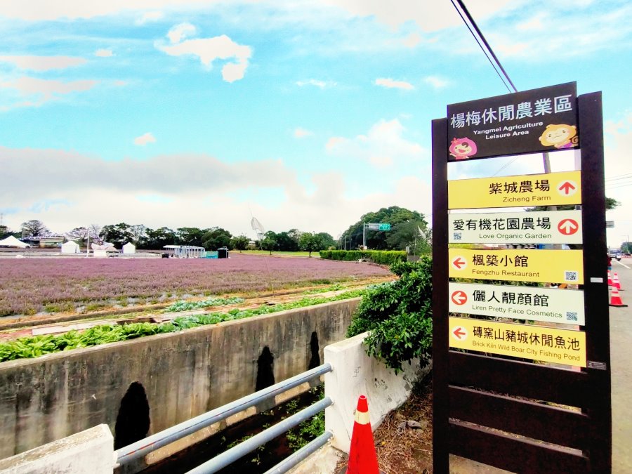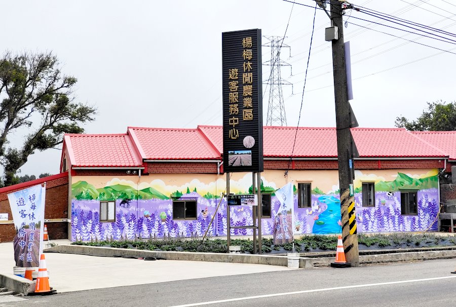 ▼附近還有楊梅休閒農業區遊客服務中心,有旅遊相關問題也可以來諮詢一下,一旁也有彩繪花海可供拍照唷!