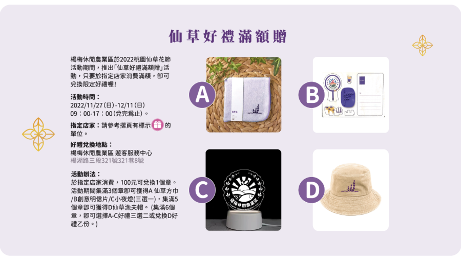 ▼這次仙草花節也有跟在地業者合作,推出消費滿額送好禮、農事體驗、市集等多項活動,來楊梅也不妨可以來走走唷!