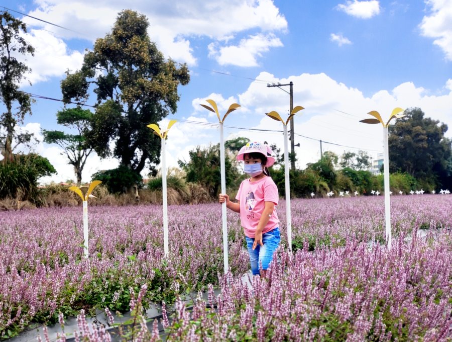 ▼這裡也有模擬直立式仙草的造型,整個好可愛啊~小口妹在花田走道中穿梭自如,第一次看到仙草花的小口妹覺得新鮮又促咪!