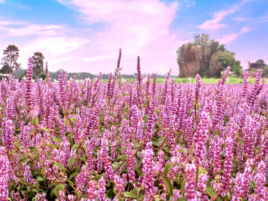 ▼歷經20多年的淬鍊,終於培育出直立型的仙草新品種「桃園2號-香華仙草」,花期在10月下旬到11月陸續開花,花莖為紫色,花色也呈現迷人的淡雅紫色,香氣濃郁,適合多次採收,又具有晚熟、乾株產量高的特性,不僅是經濟作物,也能呈現夢幻的花海給大家欣賞!