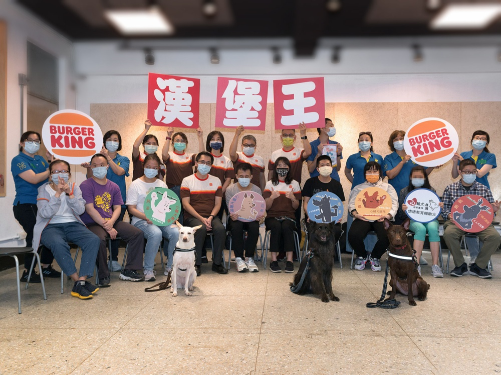 漢堡王三年前開始與台北好社企合作,今年攜手台灣心輔犬培育團隊,贊助肯納基金會心輔犬課程,透過心輔犬「狗老師」的動物療癒能量,注入「心」的能量,在志工日當天,漢堡王的員工加入志工服務,和肯納基金會一起參與服務課程,而員工日這天,漢堡王也為員工們提供了心輔犬的療癒體驗課程,一起從被療癒到服務他人的過程中感受到愛與關懷,體會到生命的新價值。