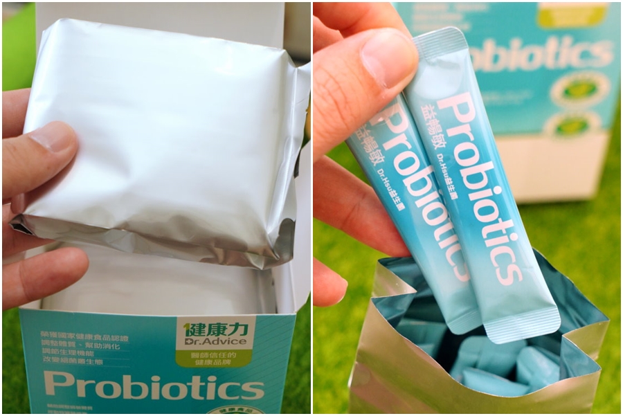 ▼打開外盒,產品外頭採用防潮遮光專利鋁箔包材,裡頭才是獨立條狀包裝!不過這款益生菌雖然經過凍晶乾燥處理,短時間可放置常溫,但如果要長期存放的話還是建議冷藏保存,以保留活菌的活性~