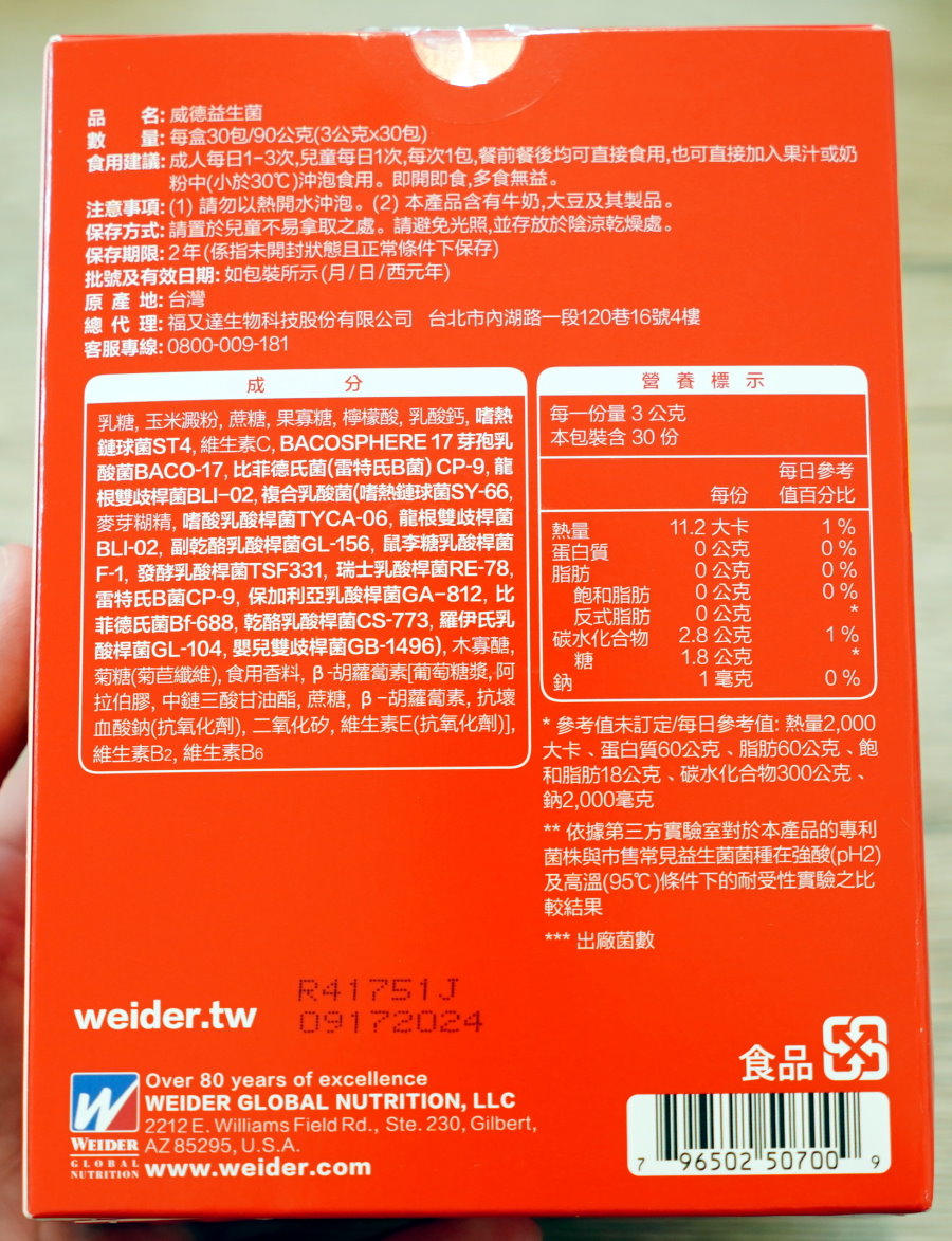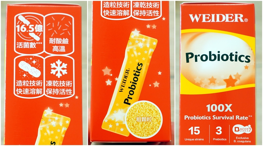 ➤威德益生菌:出廠菌數為16.5億,並非保證菌數,加上無任何臨床實驗證明,會讓人稍有疑慮;加上裡頭也有添加香料,所以扣了一些分數,不過好處是價位相當平實,算是CP值很高,有預算考量的朋友可以考慮。