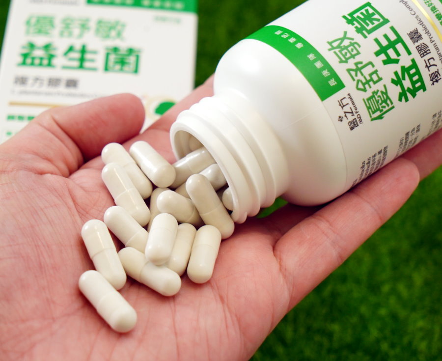➤台塑生醫優舒敏益生菌複方膠囊:有100億的高菌數,搭配特殊包埋技術,加上一天兩顆也不會傷荷包,算是滿不錯的選擇,可惜沒有標示有臨床實驗,所以扣了一些分數;值得一提的是這款採用素食膠囊,是少數奶素朋友可食用的膠囊劑型益生菌。