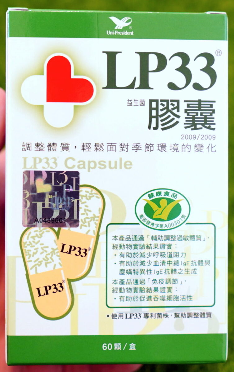 ➤統一 LP33®益生菌膠囊:經動物實驗獲得國家安全健康食品雙效認證,可惜沒有標示包埋技術,不能確保25億菌數能安全抵達並定殖在腸道,還有需冷藏保存這點較為不便。