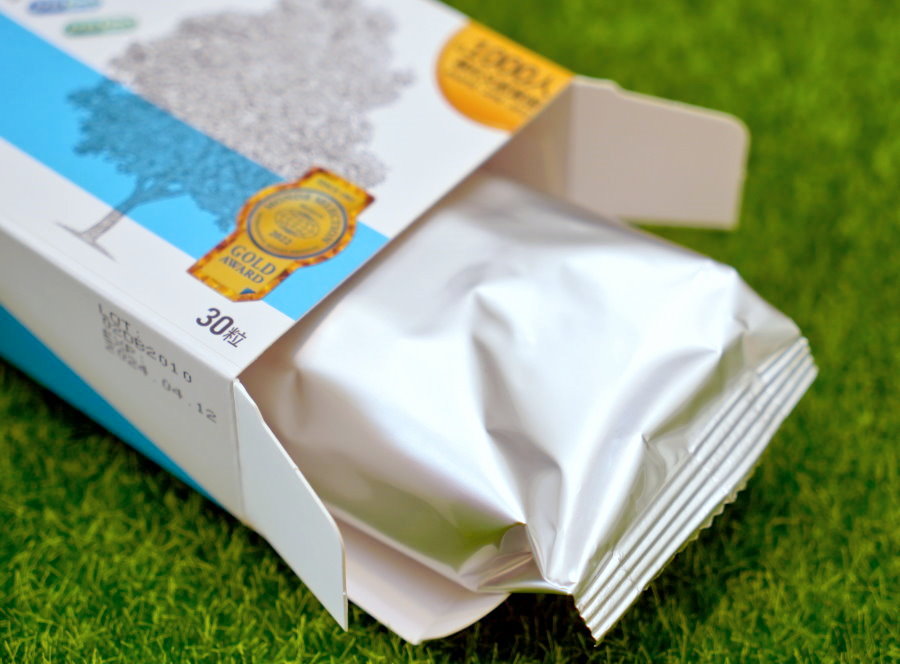 ▼打開一看,裡頭是採用鋁箔袋包裝,剪開一看裡頭是膠囊劑型的食用方式!