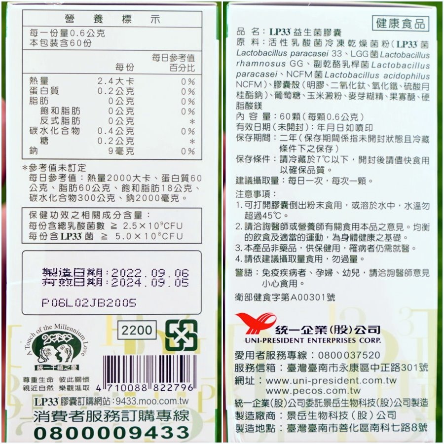 ▼「統一 LP33®益生菌膠囊」使用原廠LGG益生菌、優質益生菌種NCFM及LP33等複合菌種,並榮獲國家健康食品標章,包括輔助調整過敏體質、免疫調節等雙效認證,且都是經由動物實驗結果證實,外盒還有防偽貼紙,對消費者來說也是多一層保障;每顆含有25億有效益生菌,建議冷藏保存,更能維持菌株活性!