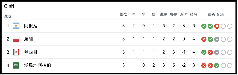 11/22 (二) 23:30 墨西哥 0 VS. 波蘭 0