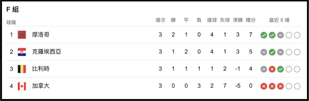 2022 FIFA 卡達世界盃足球賽 F 組賽程、戰績、隊伍介紹 克羅埃西亞、比利時、摩洛哥、加拿大 直播轉播資訊