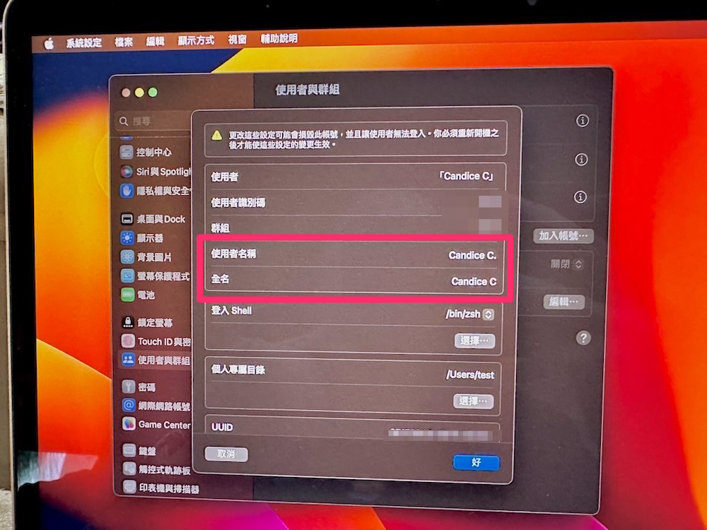 想要在 Mac 上登入使用,除了管理者之外還能為家中成員新增使用者名稱,但若是想要在 macOS Ventura 中更改當初預設的使用者名稱可以怎麼做呢?