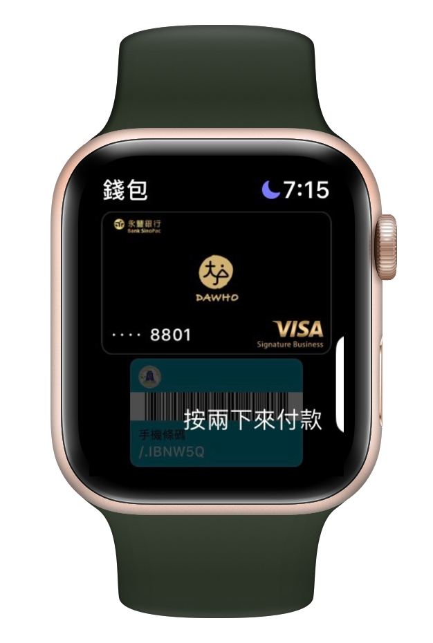 Apple Watch 錶面上也有「錢包」的選項,打開後同樣點選想要查找的信用卡就會顯示出來(不過這邊因為我沒有用 Apple Watch 使用過,所以就沒有相關紀錄)。