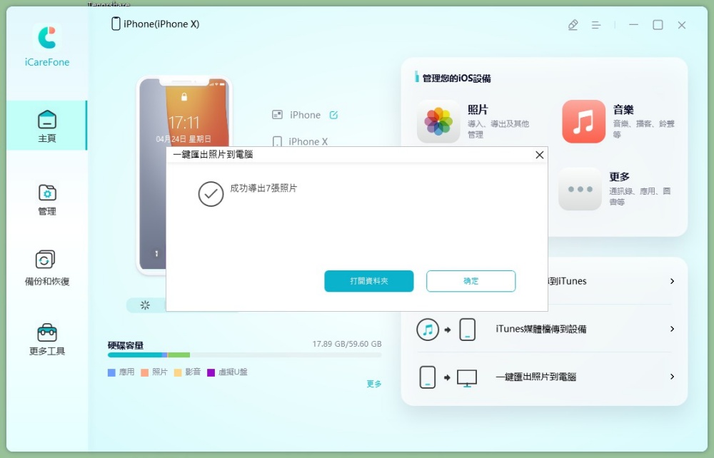方法1:使用 Tenorshare iCareFone 將 iPhone 照片傳到電腦