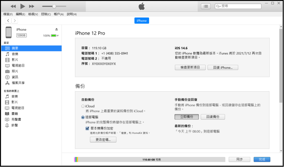 如果你在 Windows 電腦有下載 iTunes 程式,也可以透過它將 iPhone 照片傳到電腦,而這也多數蘋果使用者比較熟悉的工具。要注意的是,iTunes 無法單一完成 iPhone 照片備份,而是需要備份整部裝置的所有資料,因此需要預留更長的時間完成操作。