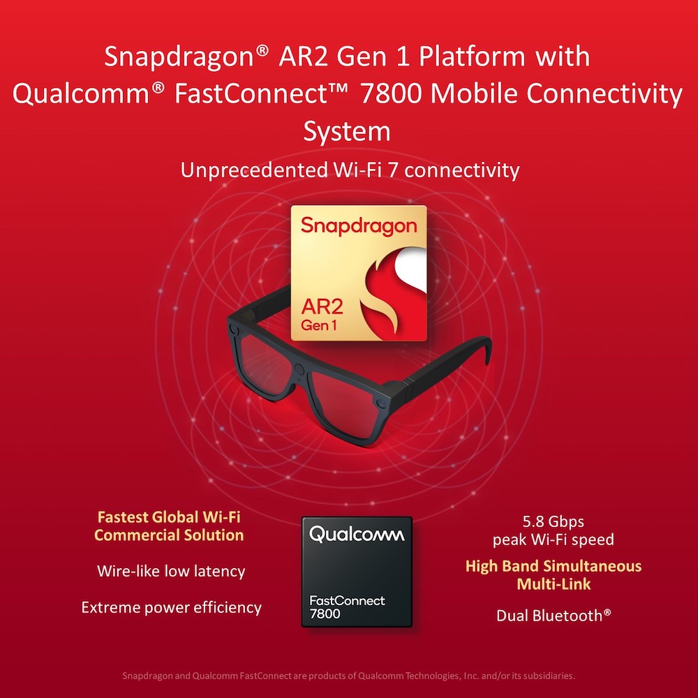 Snapdragon AR2 也支援目前全球最快的 Wi-Fi 7 技術,能讓使用者在 AR 眼鏡和智慧型手機或主機裝置之間實現低於 2 毫秒的延遲。整合 FastConnect XR 軟體套件 2.0 功能,就能能更好地控制 XR 數據,以改善延遲、減少抖動並避免不必要的干擾。