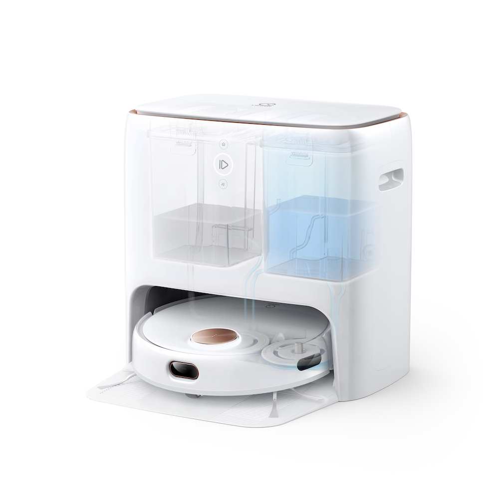 具,基站內設 4L 清水、汙水分離式大水箱,可自動回洗抹布,並提供 40 度熱風烘乾功能,加速拖布水分揮發,避免拖布異味與細菌滋生,特別適合台灣相對潮濕的氣候。自動基站更附可拆卸式防水