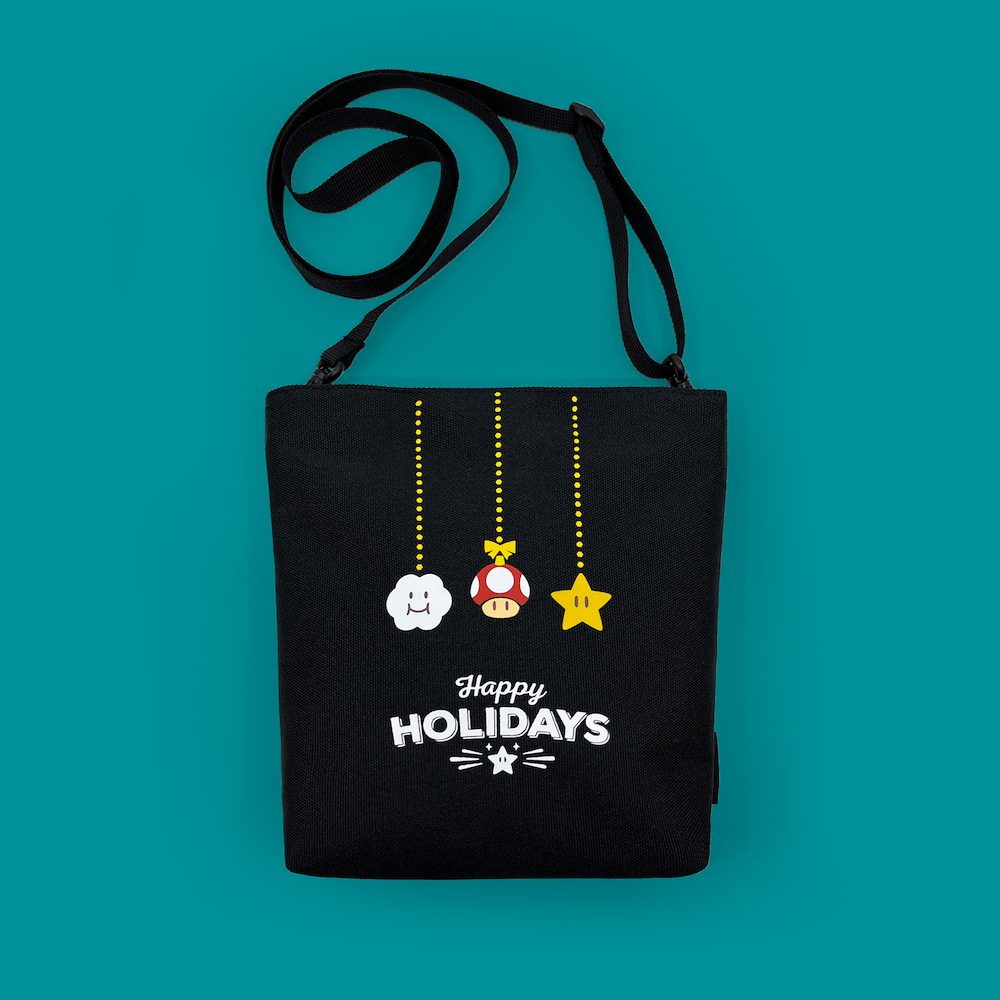 除了運動組合,任天堂還推「自由選組合限定特典」,只要購買 Nintendo Switch、Nintendo Switch(OLED款式)、Nintendo Switch Lite 或其他特別版主機的任何一款公司貨主機,再配上自選任何一款由 Nintendo 發行的盒裝版遊戲軟體,即有機會獲得「Happy Holidays 限定隨身包」一個。