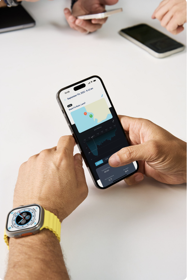 Oceanic+ app 也提供複雜功能,給使用者一目瞭然的重要資訊和工具,包括禁飛時間、水面時間、快速使用潛水計劃功能、潛水設定、目前海拔高度、允許的最大海拔高度,以及快速返回 app 的按鈕。從計劃潛水,到跳入水中,再到踏回陸上的第一步,使用者可以追蹤並比較潛水歷程的所有細節,並直接透過 app 與其他潛水員分享經驗。