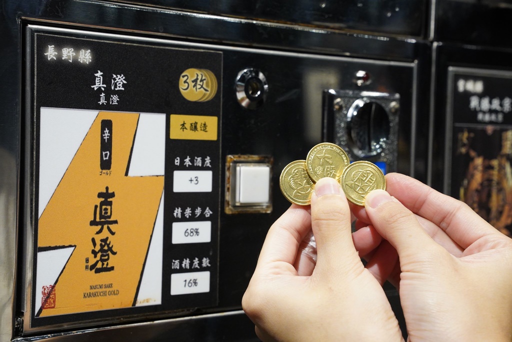 大股燒肉最大的特點之一,就是這面超壯觀的日本清酒自動販賣機,喜歡清酒的朋友肯定要試試看!提供清酒、吟釀品項多達20種左右,使用方式須先跟店家換代幣,每個代幣100元,不同酒類的價格不同。