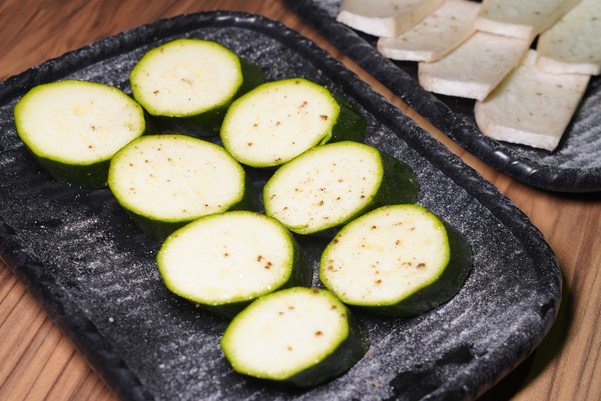 來點蔬菜清爽一下,他們連櫛瓜都是厚切版本,而且這麼厚還能烤的脆口多汁,真是不簡單!