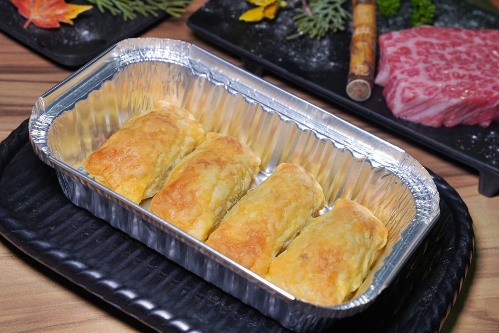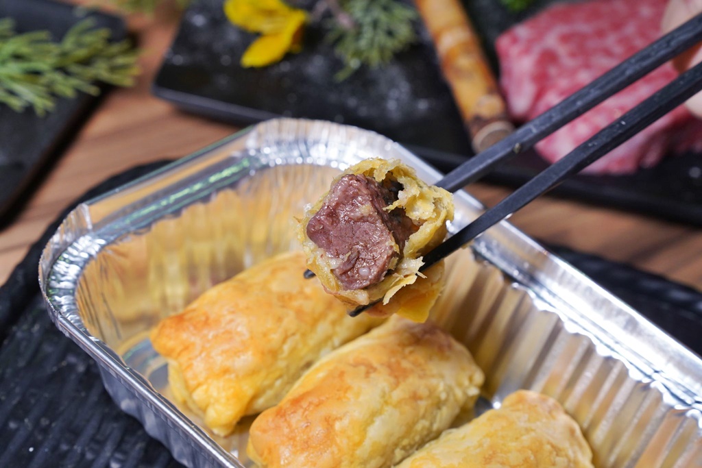 這道不用在桌邊烤,一端上桌就能直接享用!使用酥皮包裹牛肉,將外皮烤至金黃,一口咬下先是香酥的外皮,接著是熱呼呼、軟嫩的牛肉,帶點松露醬汁的調味,有創意又好吃的一道料理~