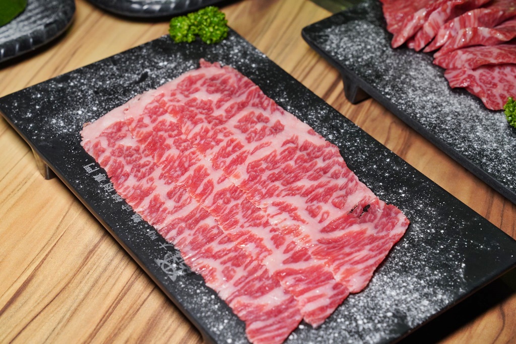 油花分布的十分均勻,如大理石紋般漂亮,口感和頂級穀飼和牛相當,肉質緊實好吃!