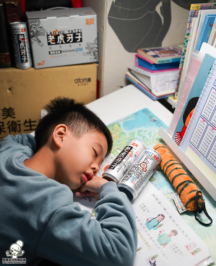 像是孩子考前可以補充,每天補充一瓶來補充老虎牙子無糖2X有氧氣泡飲