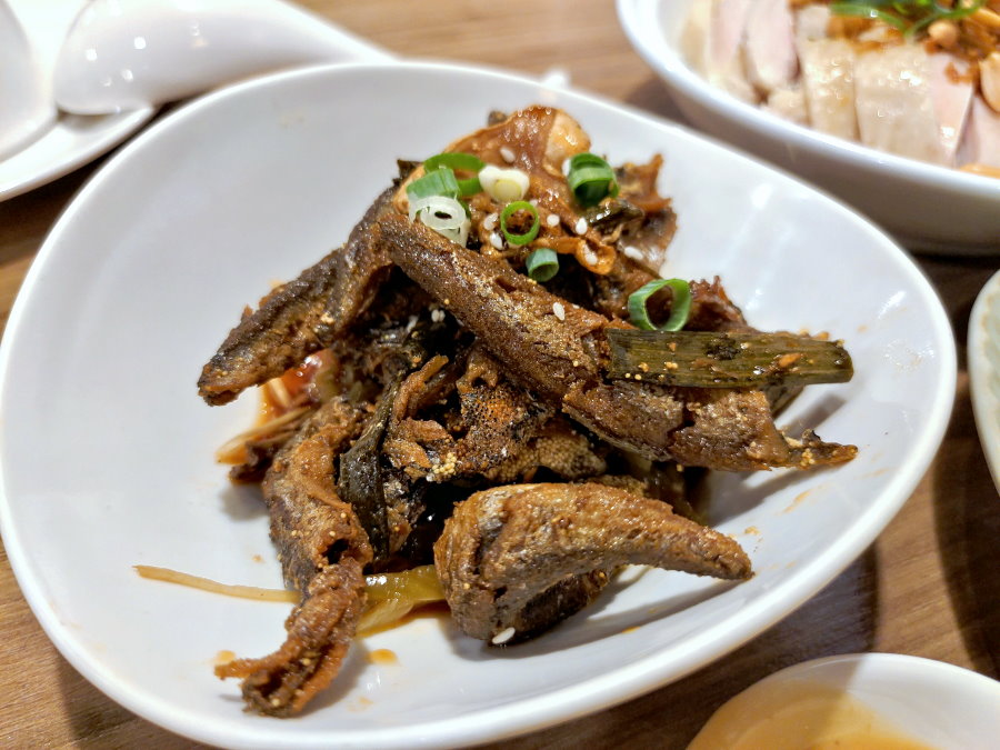 ▼蔥燒柳葉魚,這道算是下酒良品(?)吃起來口感較乾爽,鹹香又帶點鮮美滋味!(未滿十八歲請勿飲酒)