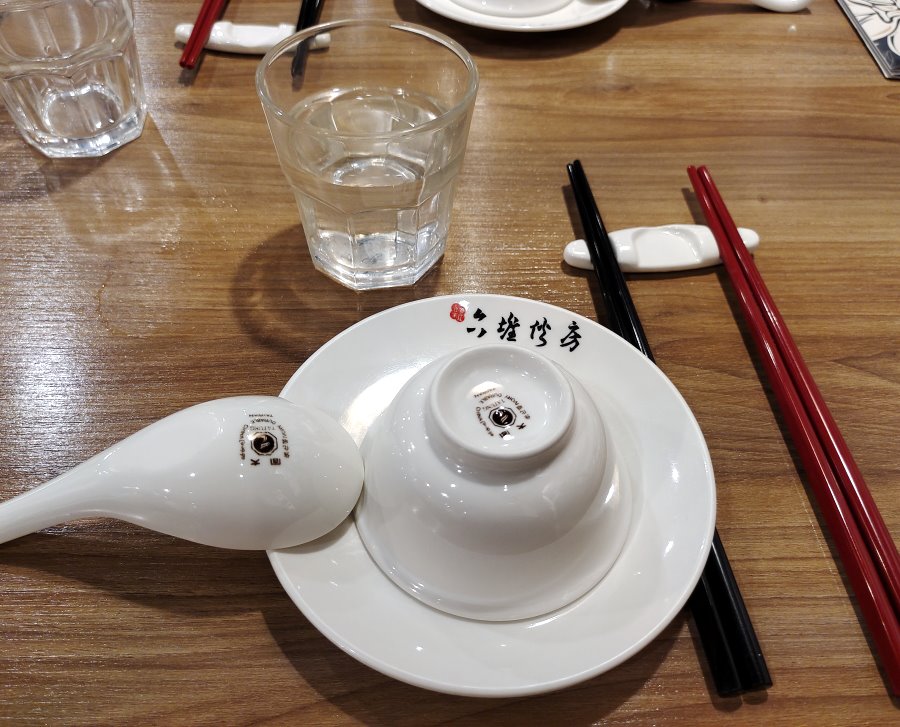 ▼桌上已經擺放好餐具,採用的是瓷器碗盤,質感也較好~~值得一提的是這裡每人還有提供公私雙筷,通常距離餐盤較遠的是公筷(紅色),不過大家統一講好要用哪一個顏色當公筷即可(笑)!