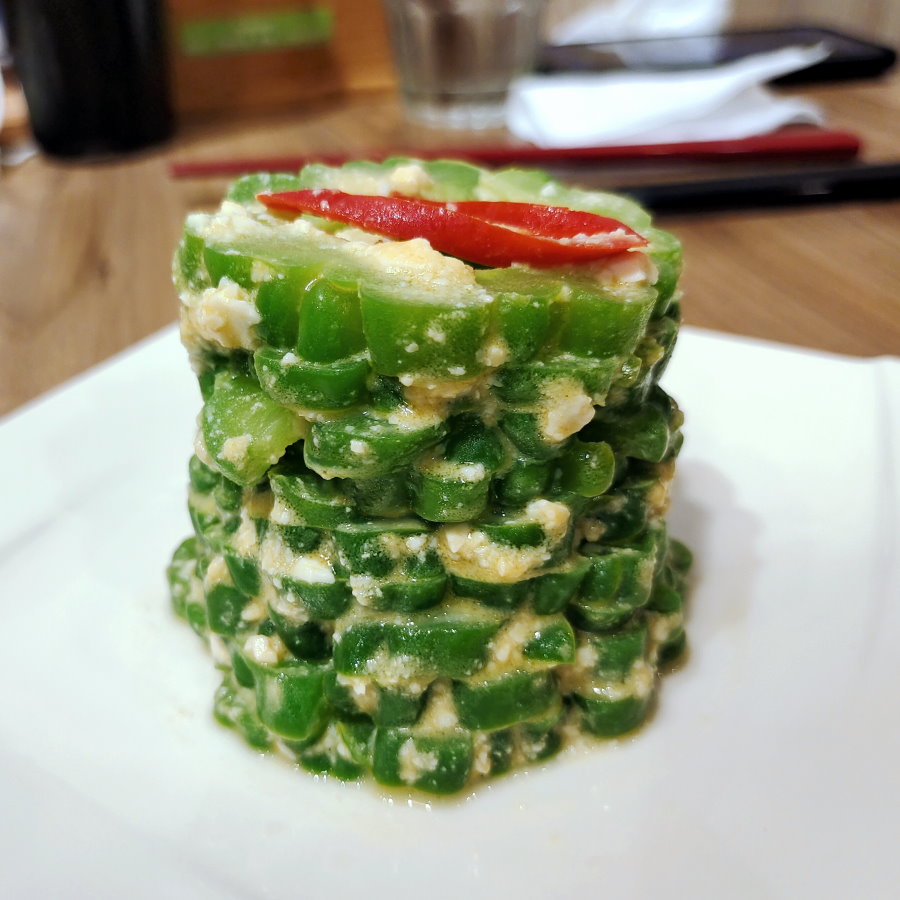 ▼金沙翠苦瓜,因為同行有人熱愛苦瓜,所以我們兩種都點來吃吃看~可惜這一道口味較清淡,吃不太出金沙的香氣,吃起來比較像是在吃涼拌苦瓜的概念,但苦味沒這麼明顯就是!