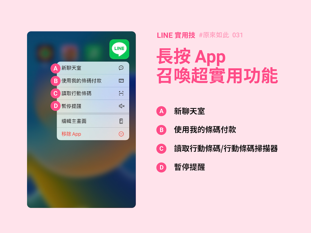 LINE小技巧:長按app快速開啟4大功能 掃條碼快狠準