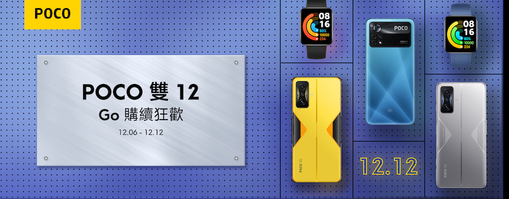 POCO F4 GT 雙 12 活動期間直降 $4,000 元; POCO F4 雙 12 活動期間直降新台幣 $2,500 元; POCO X4 Pro 5G 雙 12 活動期間直降新台幣 $1,700 元; POCO C40 雙 12 活動期間直降新台幣 $1,000 元,優惠價只要新台幣 $2,999 元。