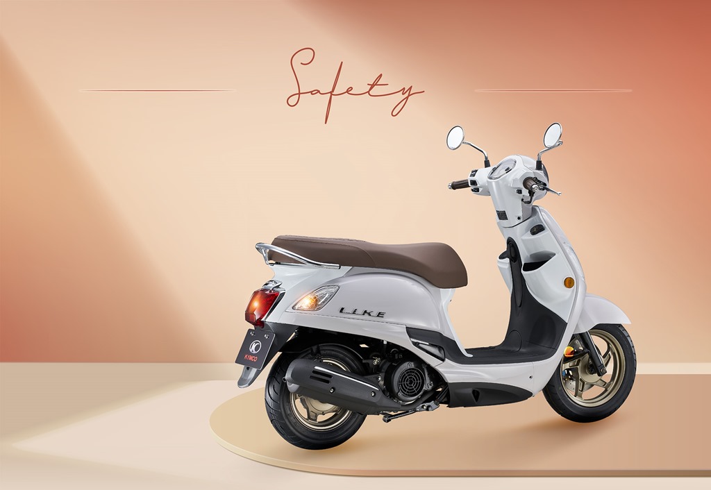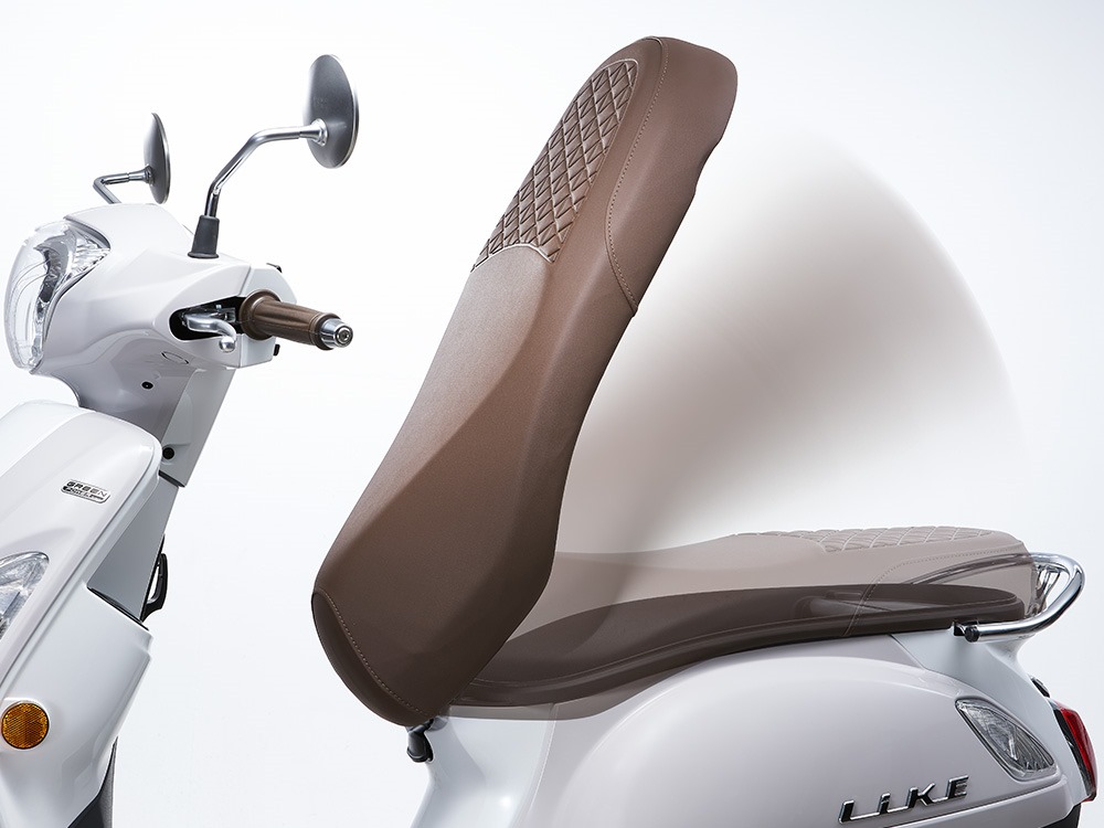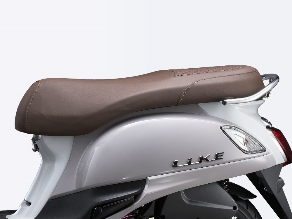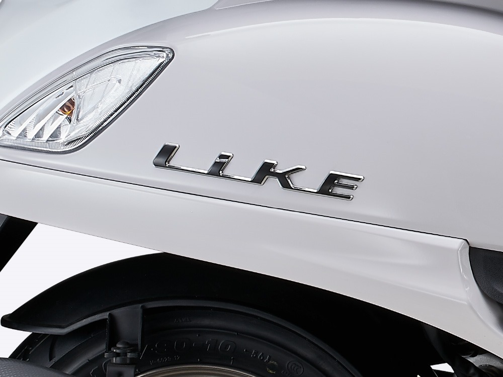 時尚且經典的義式流線車型設計,頭燈組整個燈具尺寸更大,新款大燈造型更大方與外放的感覺,配合圓潤可愛的方向燈,更有一種炯炯有神的氣勢感,再加上菱格紋皮革坐墊以及復古金屬質感的 LIKE 標誌,適合紳士般優雅騎乘、也能讓女性盡顯時尚氣息。
