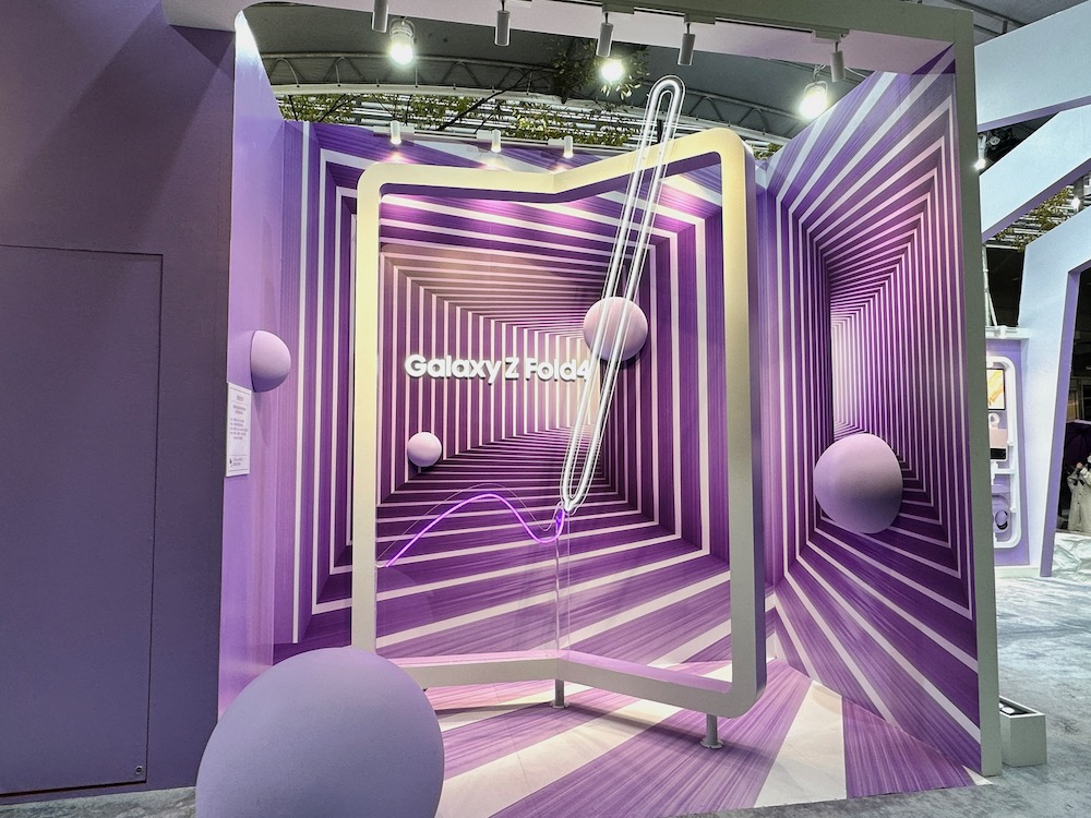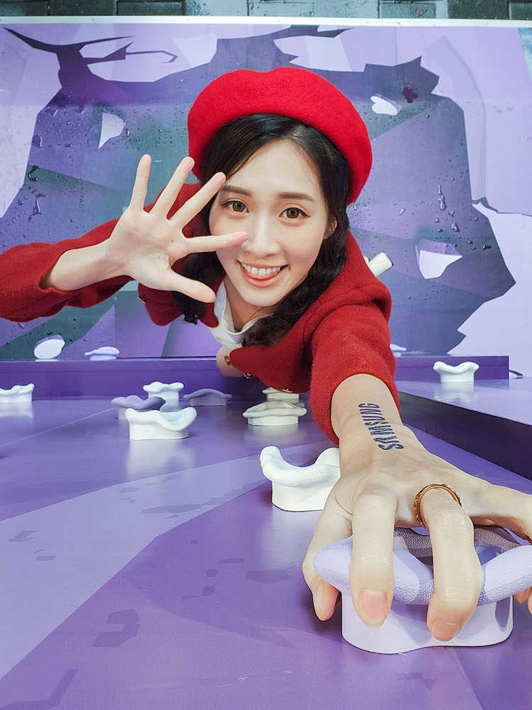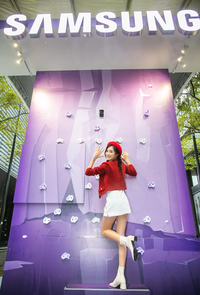 Galaxy 星地標旗艦摺疊體驗屋:位於興雅路微風信義旁的 Galaxy 星地標快閃店,一踏入就能看到 Galaxy Z 系列產品隧道,極簡純白視覺牆文青味十足;兩旁還有摺疊風格牆面,介紹三星旗艦摺疊系列與 Google 合作專為摺疊設計的 UI,以及串聯三星智慧型手機、真無線藍牙耳機、智慧手錶、平板的大型模型零件框架,展現三星行動裝置的豐富串聯性!拍照體驗區模擬時尚秀背景,搭配 Galaxy Z Flip4 低角度拍攝,即使一人出遊,不需他人協助,比 5 便能自動倒數快門,讓星粉化身長腿名模,留下超有氣勢的時尚雜誌封面照。還有紫色主題的攀岩牆,Galaxy Z Flip4 位於高空俯拍,由上而下呈現攀爬懸崖峭壁的驚悚效果。