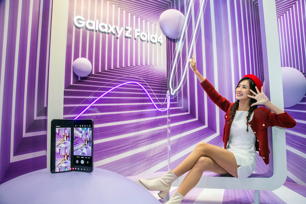 即日起至 2023 年 1 月 1 日止,Galaxy星地標旗艦摺疊體驗屋和 SAMSUNG 紫幻聖誕樹兩大美拍點於信義商圈快閃現身,不同頑美主題融合摺疊元素,不只能翻玩體驗 Galaxy Z Flip4 和 Galaxy Z Fold4 的多元視角,踩點拍照完成任務還能獲得專屬好禮!