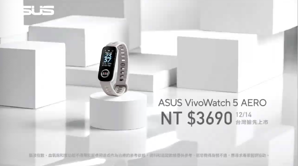 堅持台灣製造與技術 100% 自主研發的 ASUS 此次為 VivoWatch 5 AERO 帶來 NT3,690 售價,並於 12 月 14 日起於 Yahoo! 購物中心、PChome 線上購物、momo 購物網及全台華碩手機專賣店搶先體驗開賣。
