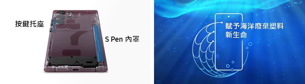 廢棄漁網是分布範圍最廣且最具殺傷力的海洋廢棄塑料之一,對海洋生物和人類居住的地球構成嚴重威脅。三星以 Galaxy S22 系列裝置打頭陣,將改造後的海洋廢棄漁網作為製造原料,並延伸至整個 Galaxy 生態圈的產品設計,涵蓋平板、筆記型電腦和耳機。三星與志同道合的組織攜手合作,將回收的海洋塑料變身新型原料,同時維持一貫的高品質。